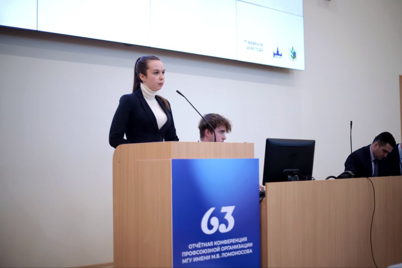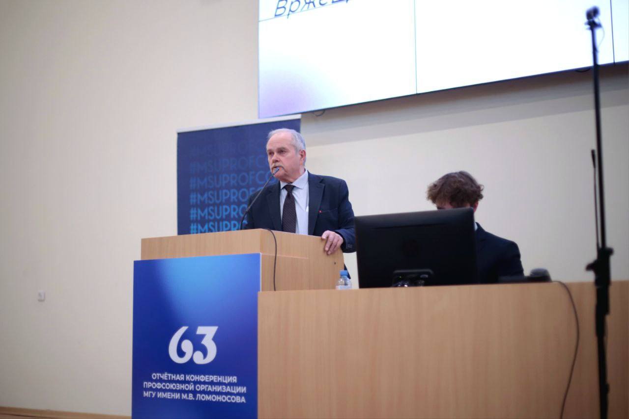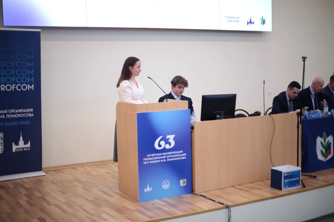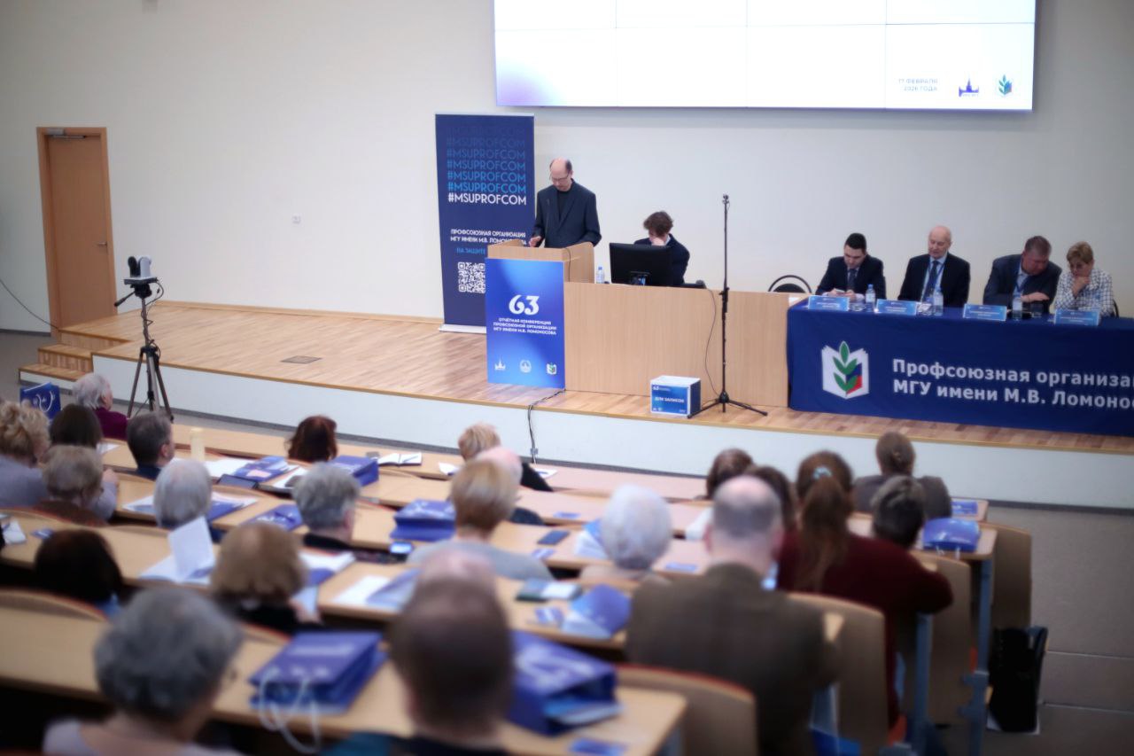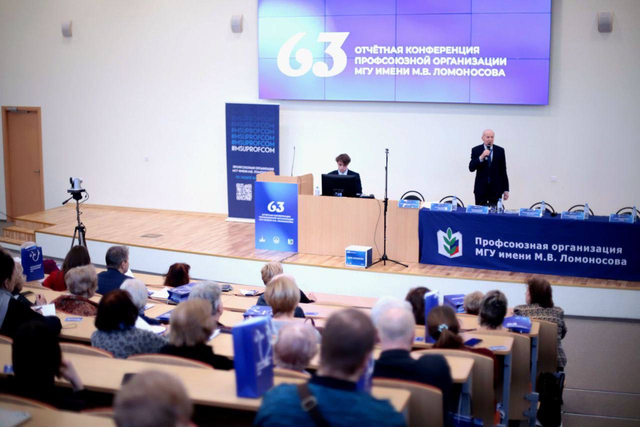 На экономическом факультете прошла 63-я отчетная конференция Профсоюзной организации МГУ. В мероприятии приняли участие более 200 делегатов, представляющих интересы сотрудников, студентов и аспирантов свыше 50 подразделений университета. В качестве почетных гостей на конференции присутствовали представители администрации МГУ и Московской городской организации Профсоюза.